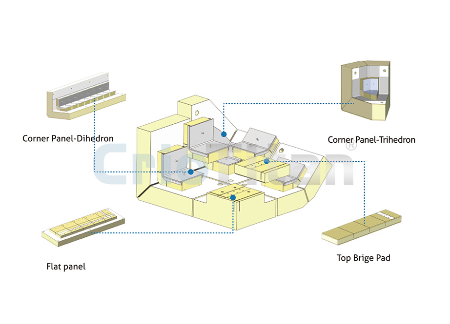Mark lI薄膜系統(tǒng)是一種由船體結(jié)構(gòu)直接支撐的絕緣結(jié)構(gòu)設(shè)計,它由一個位于預制絕緣板頂部的主級波紋不銹鋼膜,和一個由復合材料制成的完整次級屏蔽膜組成。其主要的絕緣材料采用模塊化的預制組件,可以適應任何形狀和容量的儲罐。組件主要有平面板、角落板、頂橋板等。